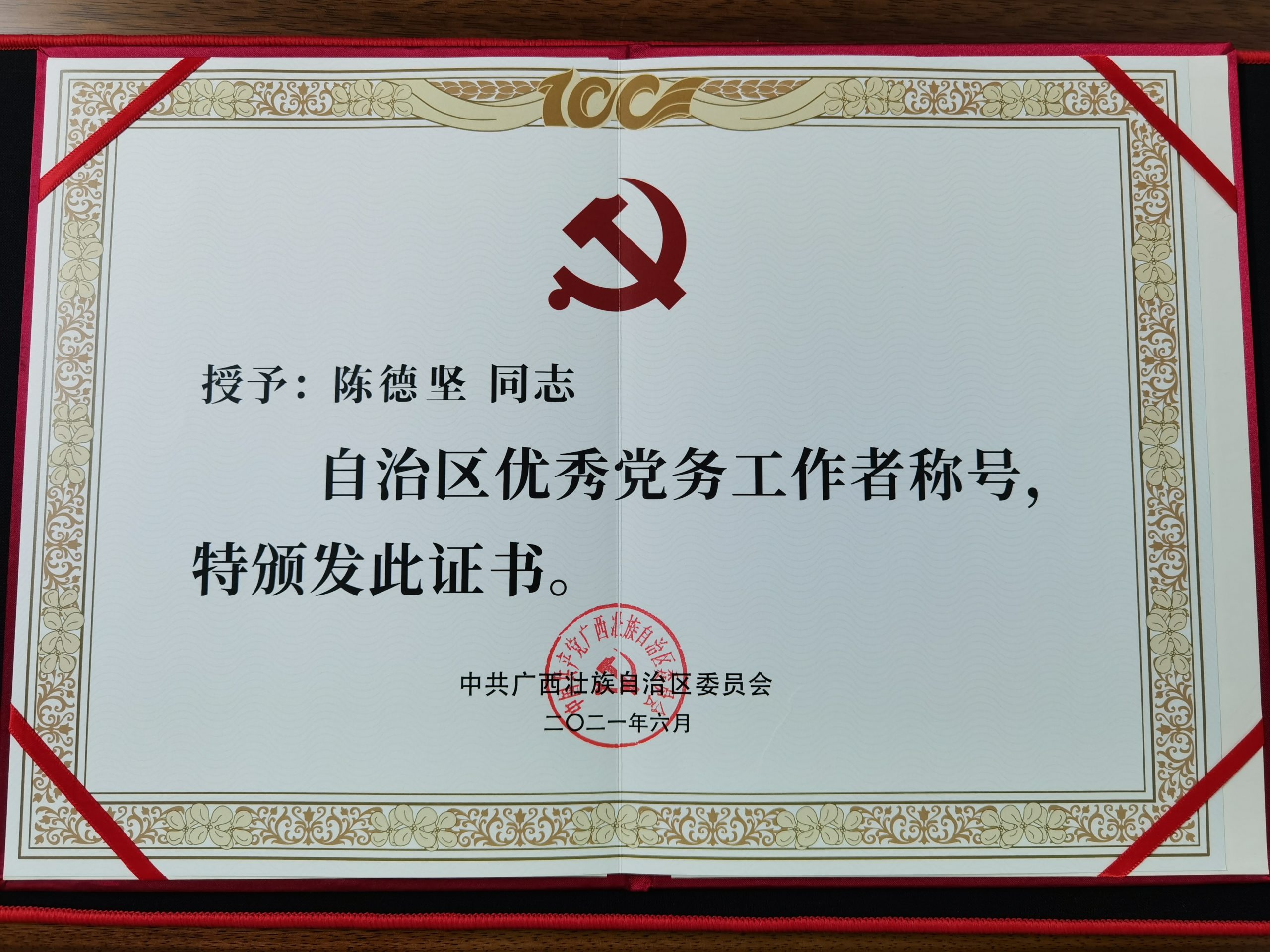 玉柴物流集團(tuán)黨委書記陳德堅(jiān)榮獲自治區(qū) “優(yōu)秀黨務(wù)工作者”稱號(hào)